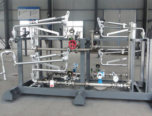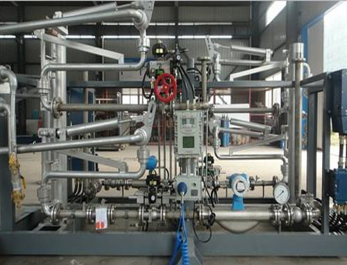 油品定量裝車(chē)橇裝組是指將每一個(gè)裝車(chē)鶴位內(nèi)的儀表和設(shè)備集成在一個(gè)專用的框架結(jié)構(gòu)內(nèi),儀表和設(shè)備包括裝車(chē)鶴管、流量計(jì)、防溢油靜電報(bào)警控制器、壓力變送器、裝車(chē)流量控制閥、緊急切斷閥,裝車(chē)泵、批量控制器等, 只預(yù)留工藝連接口和控制電源和通訊接口,這個(gè)整體集成部分稱為裝車(chē)橇。與傳統(tǒng)的裝車(chē)控制系統(tǒng)就地組裝比較,裝車(chē)橇可以節(jié)省現(xiàn)場(chǎng)設(shè)計(jì)和現(xiàn)場(chǎng)施工量,縮短項(xiàng)目工期,提高裝車(chē)控制系統(tǒng)的質(zhì)量。